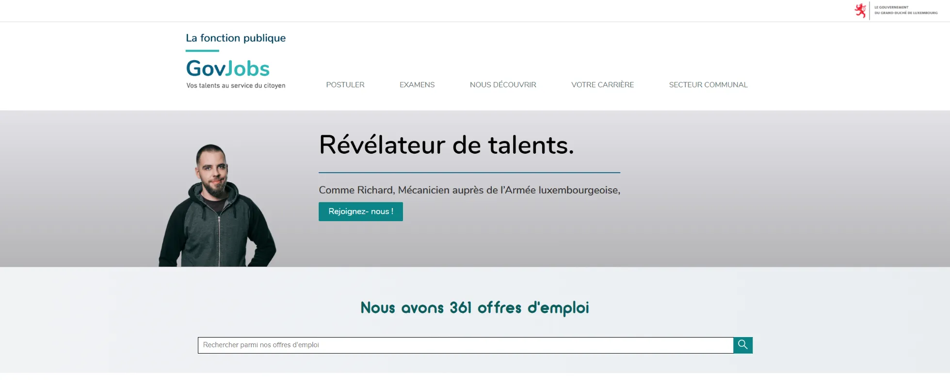Ce site vous propose de consulter toutes les offres d’emplois des différents ministères, administrations et services publics. Vous pouvez postuler directement pour un poste vacant, vous inscrire pour une prochaine session de l’examen-concours ou vous informer de manière générale sur les métiers et le recrutement dans la Fonction publique du Grand-Duché de Luxembourg.