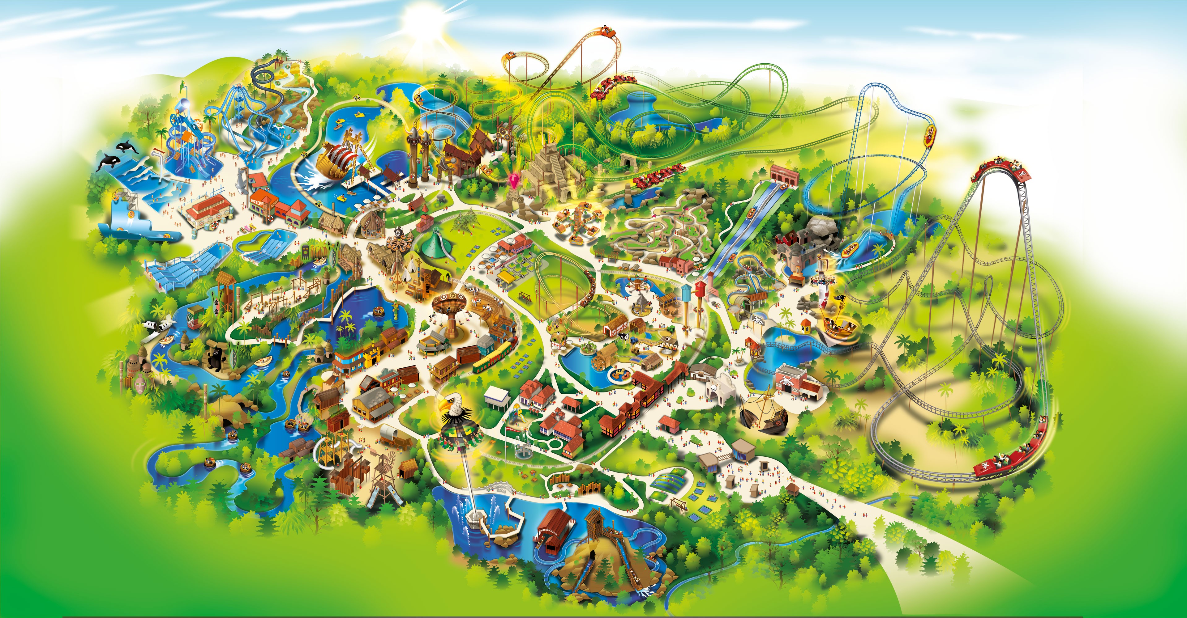 Le parc est divisé en plusieurs zones thématiques comme Waterland, Africa Land, Lili Put Land, Mexico Land ou Pirate Land.